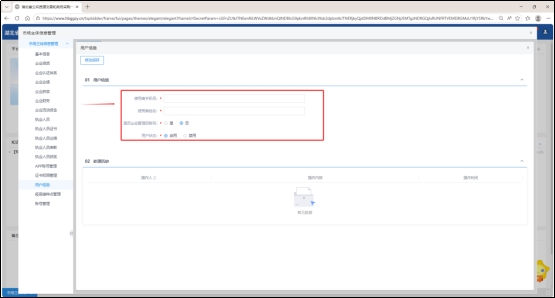 2、点击【新增用户】按钮,填写“用户信息”相关信息,填写完成后,点击【修改保存】按钮即用户信息新增成功。